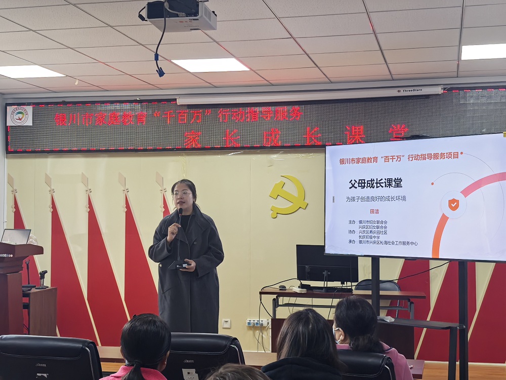 田洁老师主讲《青春期的学业压力:共同应对挑战》和《家庭氛围营造:为孩子创造良好成长环境》。田洁老师是宁夏智力残疾人及亲友协会副主席、宁夏青年企业家协会理事、国家二级心理咨询师、婚姻家庭咨询师和高级家庭教育指导师。田老师从孩子的学业压力入手,用体验式的授课方式帮助家长理解青春期孩子面临的学业压力,建议各位家长从营造和谐、积极的家庭氛围做起,和孩子共同寻找有效的应对压力的方法,促进孩子的健康成长。