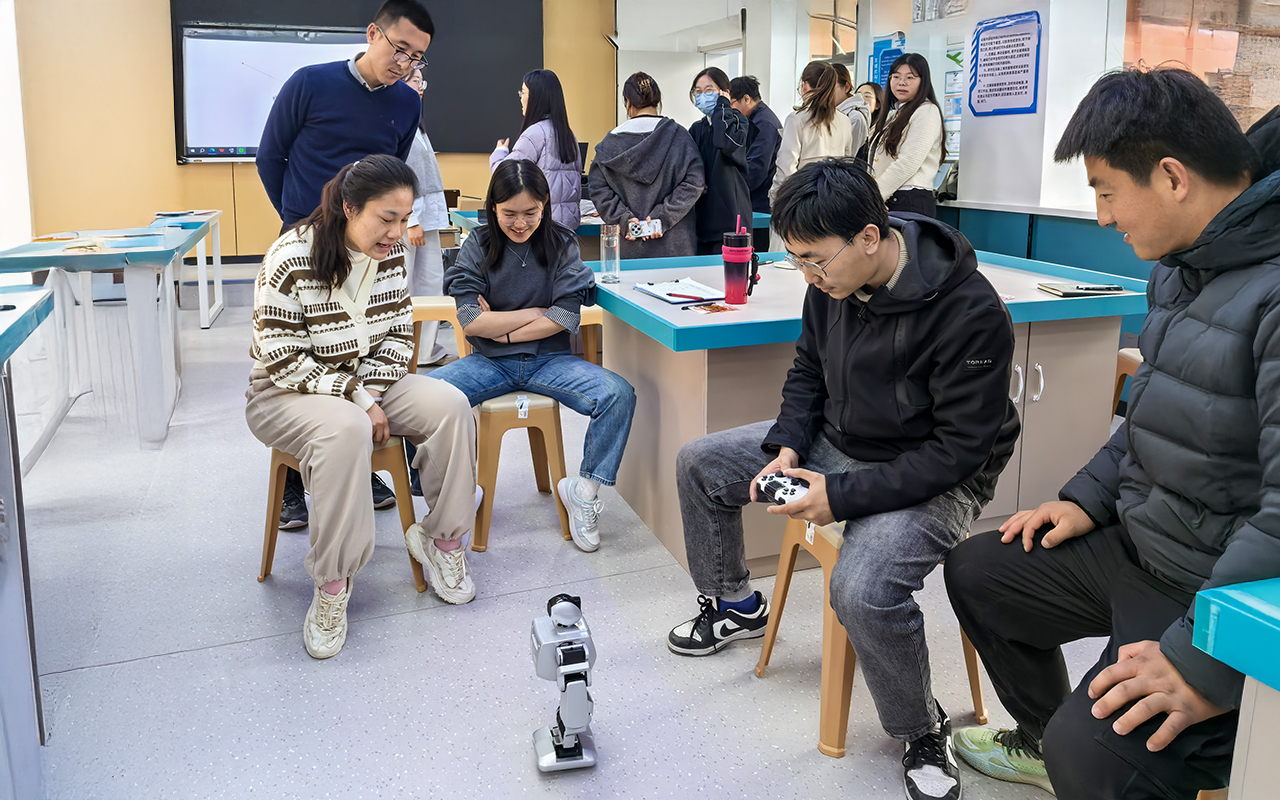 在机器人编程体验区,青年教师们亲手操作编程软件,引导机器人完成各种动作。从简单的前进后退,到复杂的舞蹈动作,青年教师们不仅理解了机器人的工作原理,更深刻体会到逻辑思维和创新能力的重要性。